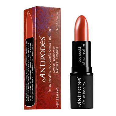 Antipodes Moisture-Boost Natural Boom Rock Bronze Lipstick is part of a range of healthy lipsticks from New Zealand nature for safe, everyday wear – which will take you far into the night.